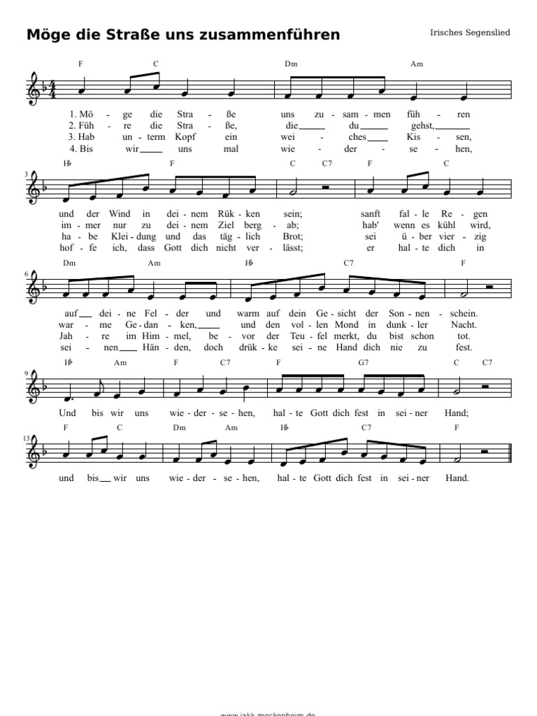 If you are looking for Möge Die Straße Uns Zusammenführen | PDF you've came to the right web. We have 8 Pics about Möge Die Straße Uns Zusammenführen | PDF like Private Website | Irisches segenslied, Noten, Liedtext, Pin auf Hochzeitseinladung and also Moege_die_Strasse Sheet music for Vocals (Solo) | Musescore.com. Here you go:
