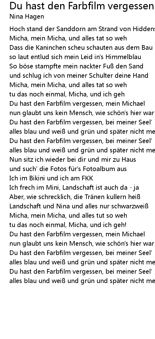 liedtext du hast den farbfilm vergessen Du hast den farbfilm vergessen mein michael : nina hagen du hast den